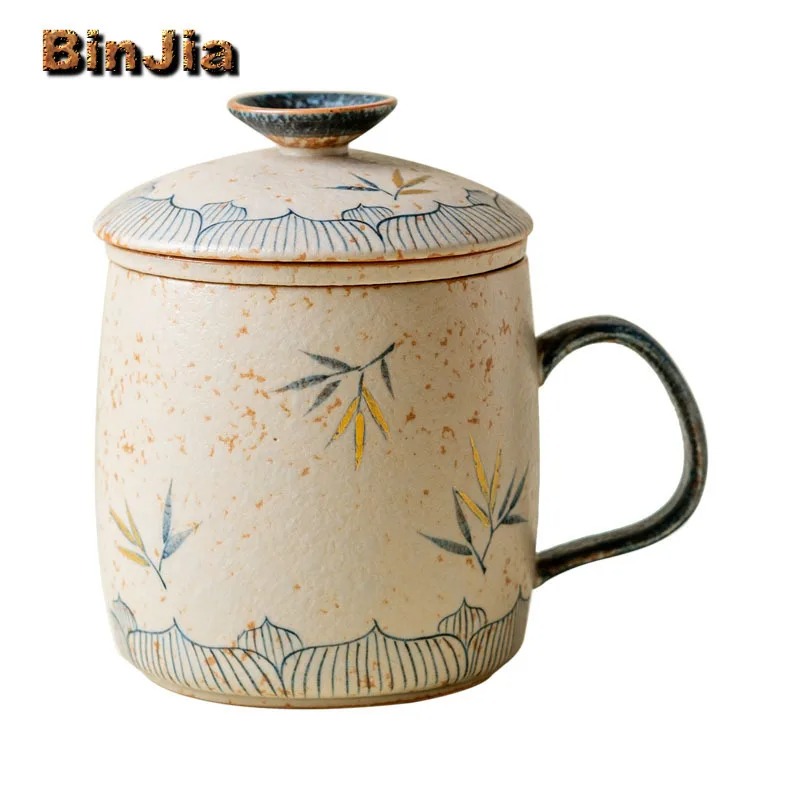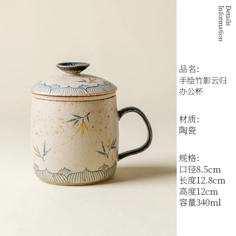 استمتع بتجربة شاي راقية مع كوب 340 مللي مزخرف بالكرمل ومصنوع يدويًا، مع فلتر خيزران عملي لصنع الشاي بسهولة.