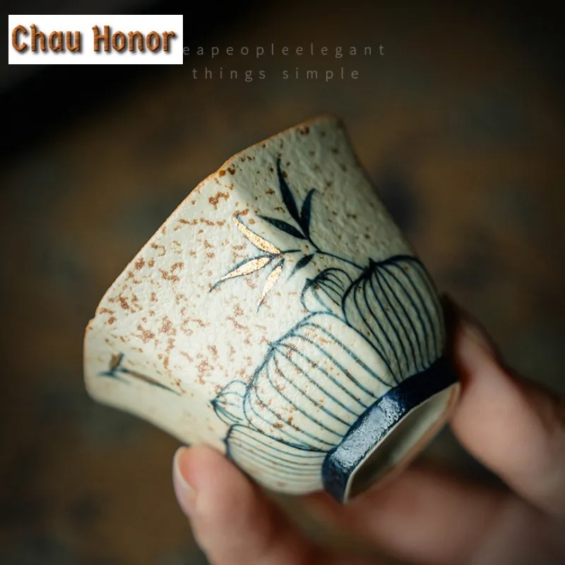 🍵 فنجان الشاي الصيني الأزرق والأبيض الفاخر – لمسة يدوية ذهبية!